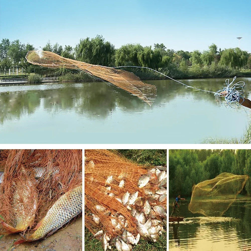 Nylon fishing net with sinkers, strong and easy to use.